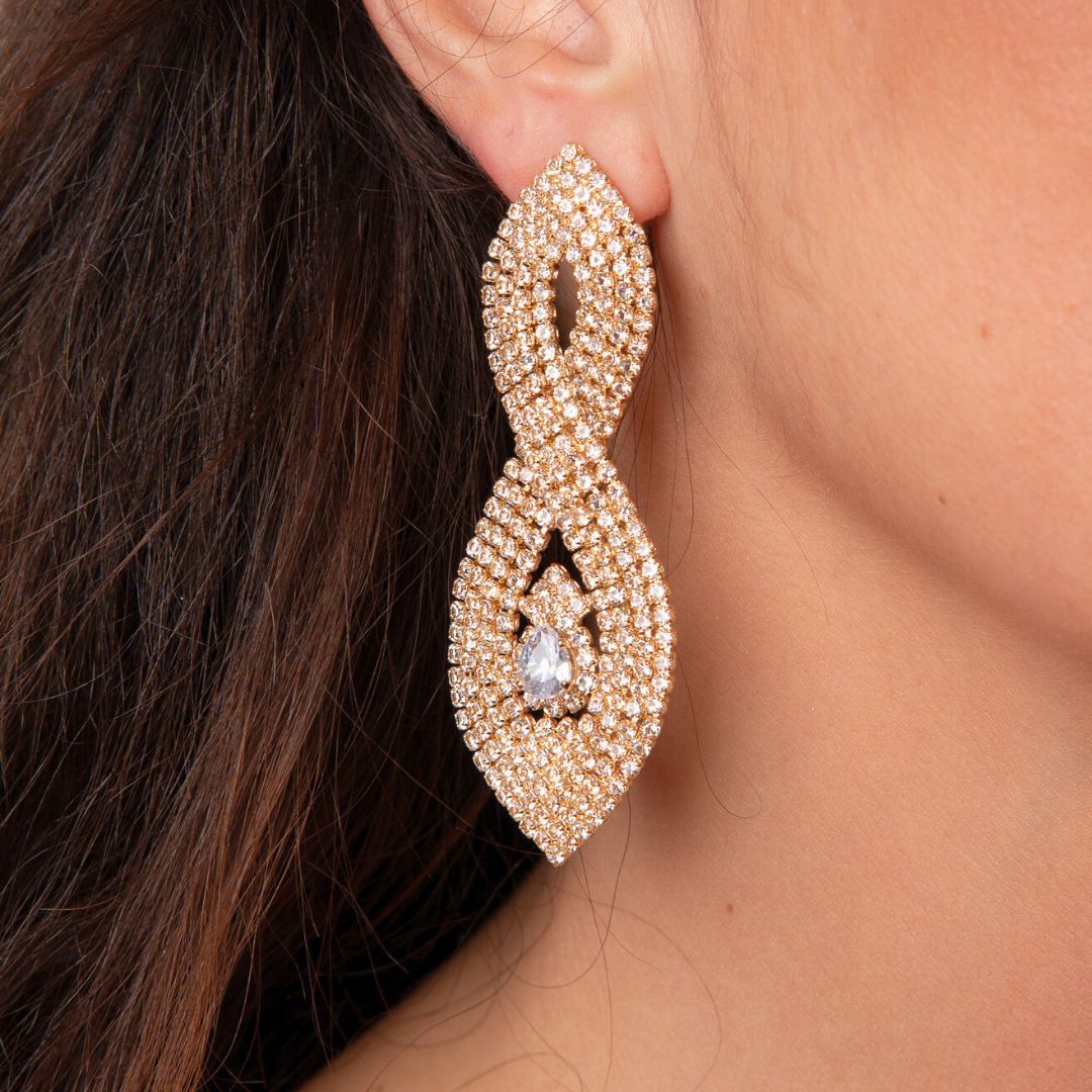 2Σκουλαρίκια Κρεμαστά με Στρας χωρίς Επιμετάλωση